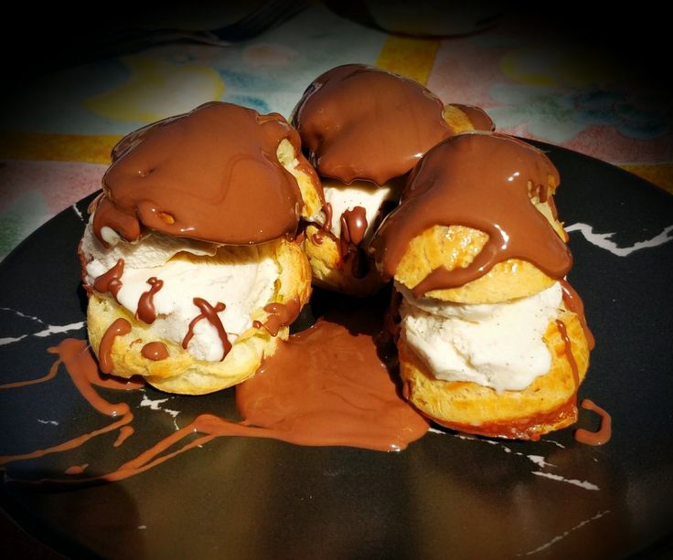 - Pâte à choux : 125 ml d'eau, 50 g de beurre, 75 g de farine, 2 œufs.